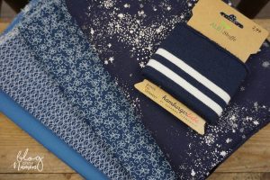 Erst einmal bleiben diese Stoffe eine ganze Weile in der hintersten Ecke im Schrank liegen. Irgendwann „erwischt“ es dann einen, der dann mit in den Stoffladen darf und für den ich dann dort nach passenden Kombis suche. Meistens wird aus diesen „Schrankleichen“ dann etwas für den Nachwuchs unserer Freunde.